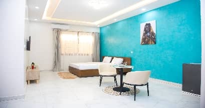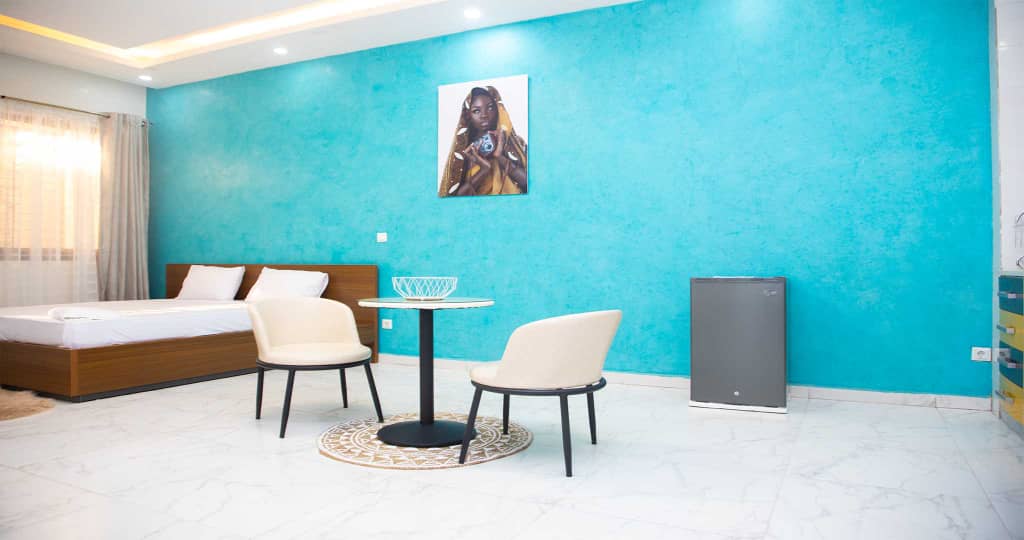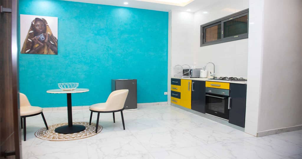 • Cuisine : Cuisine ouverte entièrement équipée avec réfrigérateur, plaques de cuisson, micro-ondes et machine à café.