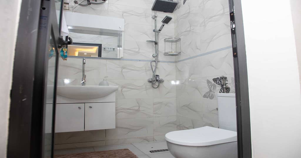 • Salle de bain : Salle d'eau moderne avec douche lavabo et WC.